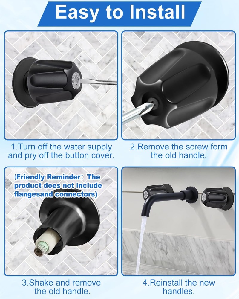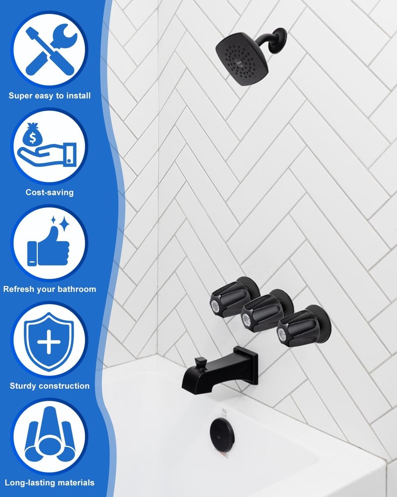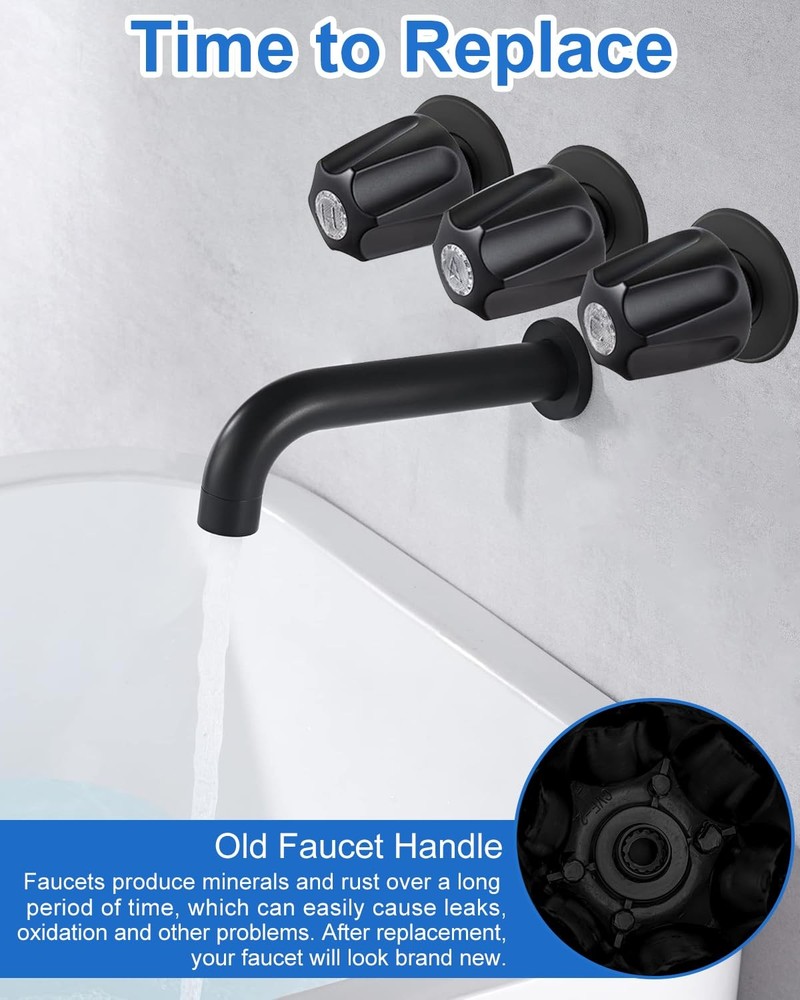 3 Set Shower Knob Replacement, Tub Faucet Handles Replacement Include Hot/ Cold/ Diverter, Bathtub Faucet Handles Compatible with Price Pfister Verve for Remodeling Trim 【Gentle Reminder】 3 Shower faucet handle is designed to replace Pfister Verve (not universal). Only fits “5-1/2 inch high, 12 tooth broach stem”. Some old handles are not original, resulting in incompatible screws, so please use the old one 【All Metal Construction】 The shower handle knobs is carefully crafted from high quality materials that are corrosion- and rust-resistant, and it comes with hot and cold water and diverter label to put on them, which are very visible and make it easier for visitors to distinguish which bathtub faucet will give hot or cold water 【The Size is Appropriate】 The 3-piece bathtub faucet replacement measure 2-3/8 inches wide at the base and 2-1/2 inches tall. They are just the right size and are very easy for children and the elderly to grip and rotate 【Humanization Design】 Complete with 3 screws and clear plastic hot and cold water and diverter indexing buttons, it requires no plumbing expertise and can be replaced in just a few minutes, making it the perfect solution for bathroom 【Hassle-free Installation】 First steps: turn off the water supply; the second step: use a flat head screwdriver to pry off the old handle cover and remove the screw; the third step: tighten the screw and close the cover, replace the handle PLEASE NOTE: Sousac shower handle replacement parts do not include the flange base, please check your own flange is damaged before purchase, if you need this accessory, please choose to have a flange base related products to buy