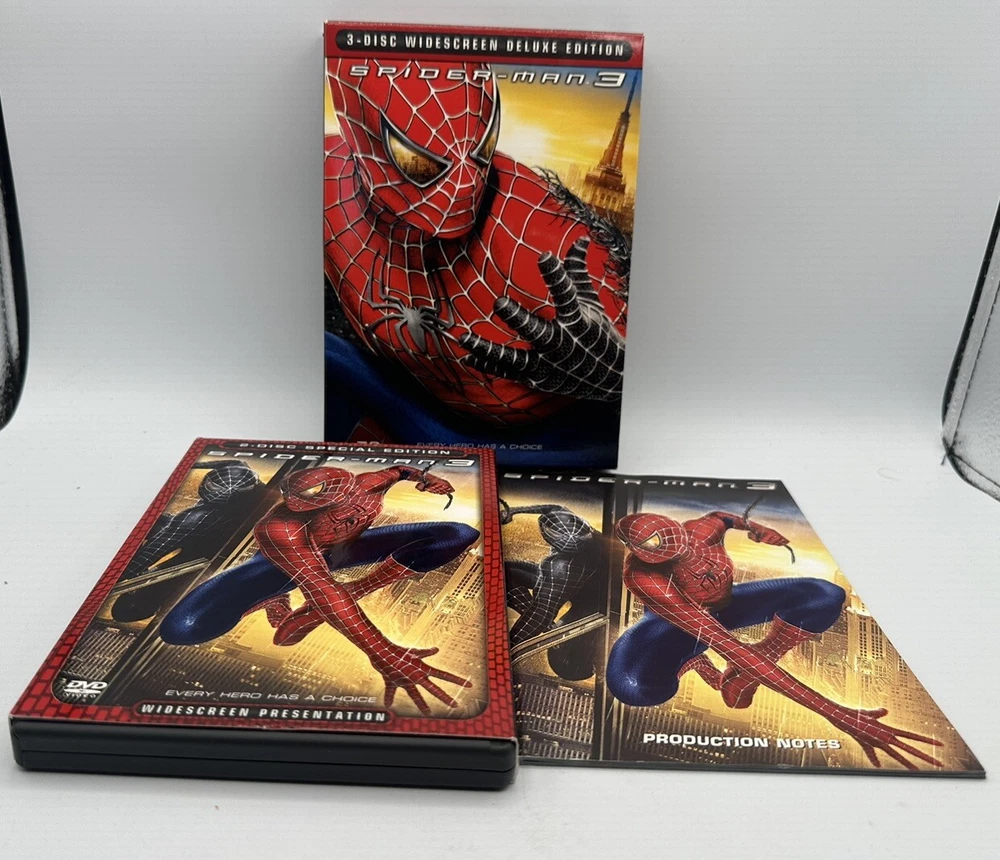This Spider-Man 3 DVD set is the perfect addition to any movie collection. It features a three-disc widescreen deluxe edition of the action-packed superhero film, starring Tobey Maguire and directed by Sam Raimi. The DVD is region code 1 (US, Canada...) and includes English and Spanish language options, as well as subtitles in English and Spanish. The film is rated PG-13 and falls under the genres of action, sci-fi & fantasy, and adventure. The DVD set includes special features and features a run time of 139 minutes. This item is a must-have for any fan of the Spider-Man franchise or anyone looking for an exciting and action-packed movie night.
