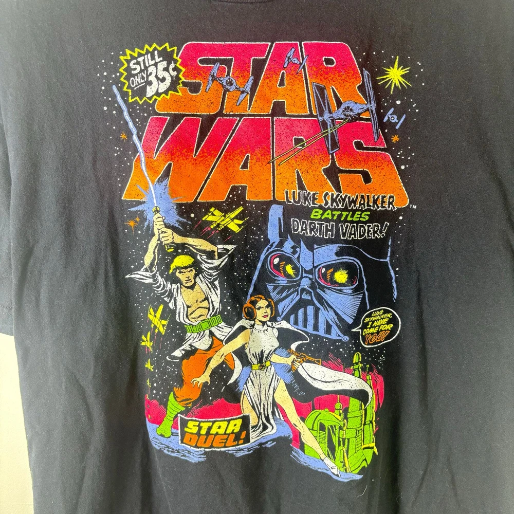 star wars mens streetwear retro graphic tee shirt size 2xl in good condition no holes or stains as shown in pics has been washed before listing refer to pics before purchasing as all defects are shown