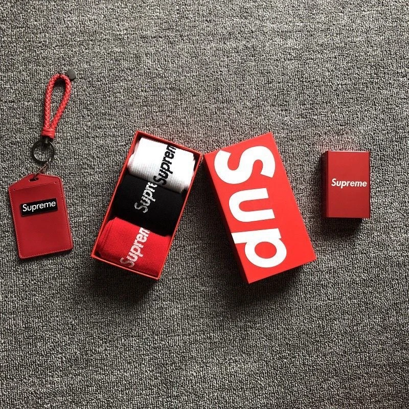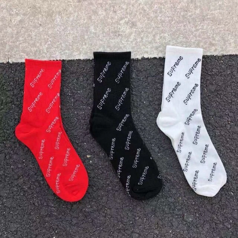 supreme mid-tube sports socks lovers box black, white and red equal size