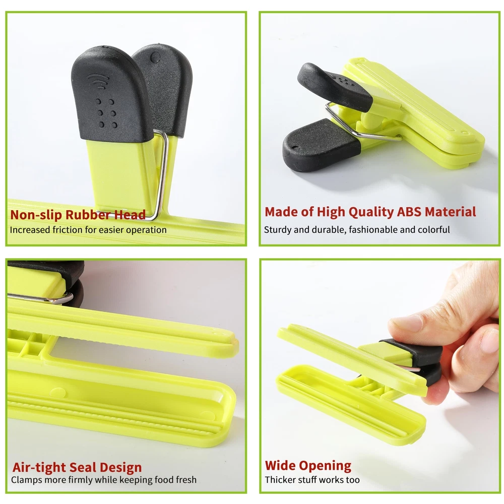 1. Versatile Size Assortment: Adaptability for All Bag Sizes, Our 8 PCS chip clips offers a thoughtful combination of large and small bag clips to cater to various bag sizes. The 6-inch by 3.3-inch large chip clip are perfect for sealing family-sized bags, while the 3-inch by 2.5-inch small chip clips are ideal for smaller snack pouches. Enjoy the flexibility of having the right chip bag clips for every package in your kitchen. 2. Vibrant Color Variety: Infuse your kitchen with personality using our vibrant food clips colors. The bag clips for food includes four lively options which are red, blue, orange, and yellow, providing not only functionality but also a visually appealing touch to your pantry. Easily differentiate between different snacks or coordinate the bag clips for food storage with your kitchen decor for a cohesive look. 3. Premium Durability: Experience the reliability of our bag clips for chips, meticulously crafted for durability. The robust construction of this clips for chips and other food bags ensures a secure grip on bags, keeping your snacks fresh for longer. No more worries about clips breaking or losing their strength over time. Invest in a chip bag clip that stands up to the demands of everyday use. 4. Clutter-Free Organization: Tired of chaotic pantries and spilled snacks? Our food clips for bags is designed to bring order to your kitchen. Efficiently seal bags of chips, crackers, and other pantry staples, preventing spills and maintaining freshness. Say goodbye to the frustration of disorganized cabinets and hello to a well-organized, clutter-free kitchen. 5. Stylish and Functional Design: Elevate your kitchen with the perfect blend of style and functionality. Our chip clips bag clips food clips not only serve a practical purpose but also boast a sleek design that adds a touch of sophistication to your storage solutions. Upgrade your kitchen essentials with a bag clips set that seamlessly combines style and utility, enhancing the overall aesthetic of your space.