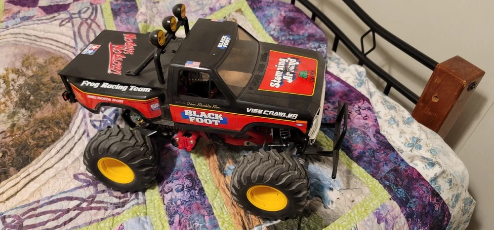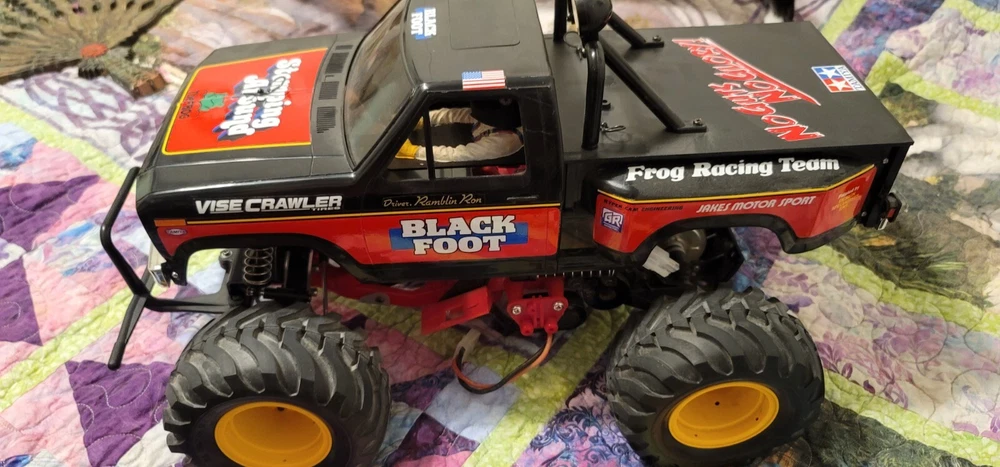 This Tamiya Blackfoot model is a must-have for any monster truck enthusiast. With its durable construction and realistic design, it's sure to provide hours of fun and adventure. This radio-controlled vehicle is perfect for those who love to challenge themselves and their skills.Whether you're a seasoned RC expert or a beginner, this Tamiya Blackfoot model is sure to impress. Its powerful motor and responsive controls allow for smooth and easy operation, making it the ultimate addition to any collection. So why wait? Add this amazing monster truck to your cart today and experience the excitement for yourself! Fully built, does not come with battery or controller or original box.