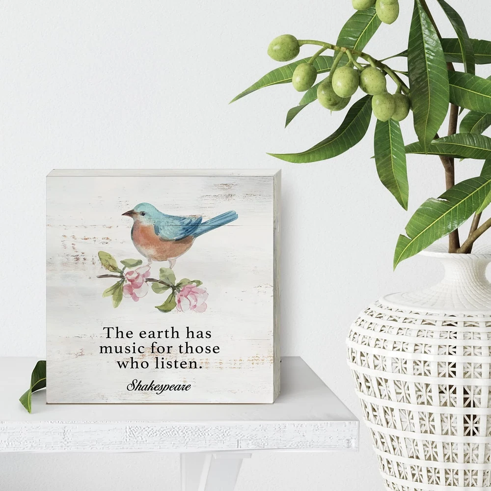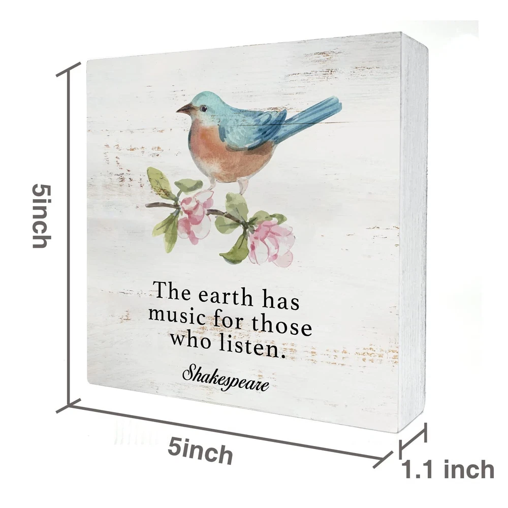 the Earth Has Music Wood Box Sign Home Decor Rustic Bird Spring Wooden Box Sign Block Plaque for Wall Tabletop Desk Home Decoration Bird Lover Gift Product Details Color: The Brand: HDKY MPN: HDKY1858 UPC: Does not apply EAN: Does not apply Product Dimensions: 5 x 5 x 0.5 inches Item Weight: 1.76 ounces Manufacturer: HDKY Country of Origin: China Item model number: HDKY1858 Perfect Size - The size of this wooden box sign is about 5 x 5 inch. Premium Quality - Our wood box sign is made of high-quality wood material, which is beautiful, strong, durable, and not easy to fade. It is ideal for the decoration for different occasions. Wall and Desktop Decoration-Two ways-This wooden box sign is displayed in two ways. Can be used as metope decoration already, also can be displayed on the desktop display. This is a convenient and effective decorative choice. Extensive Used- You can use this wooden box sign to decorate your home, kitchen, bedroom, living room, dining room, bathroom, dining room, office, classrooms and more. Ideal Gift - This decorative wood sign is a great gift choice for men, women, girls, boys, children. It is an ideal gift for birthdays, anniversaries, weddings, engagements, graduations, Thanksgiving, Halloween, Christmas or any other holiday. Ideal Christmas Gift - This decorative wood sign is a great Christmas gift choice for men, women, girls, boys, children.