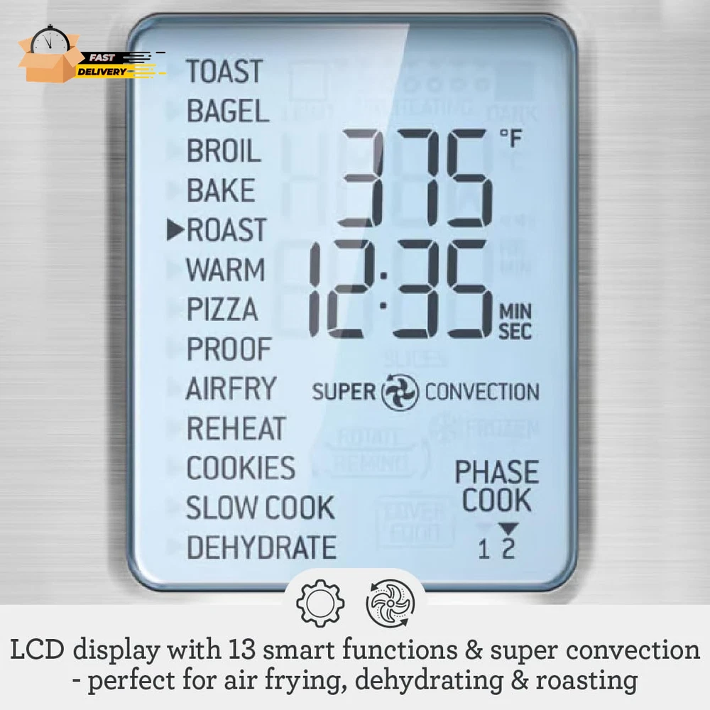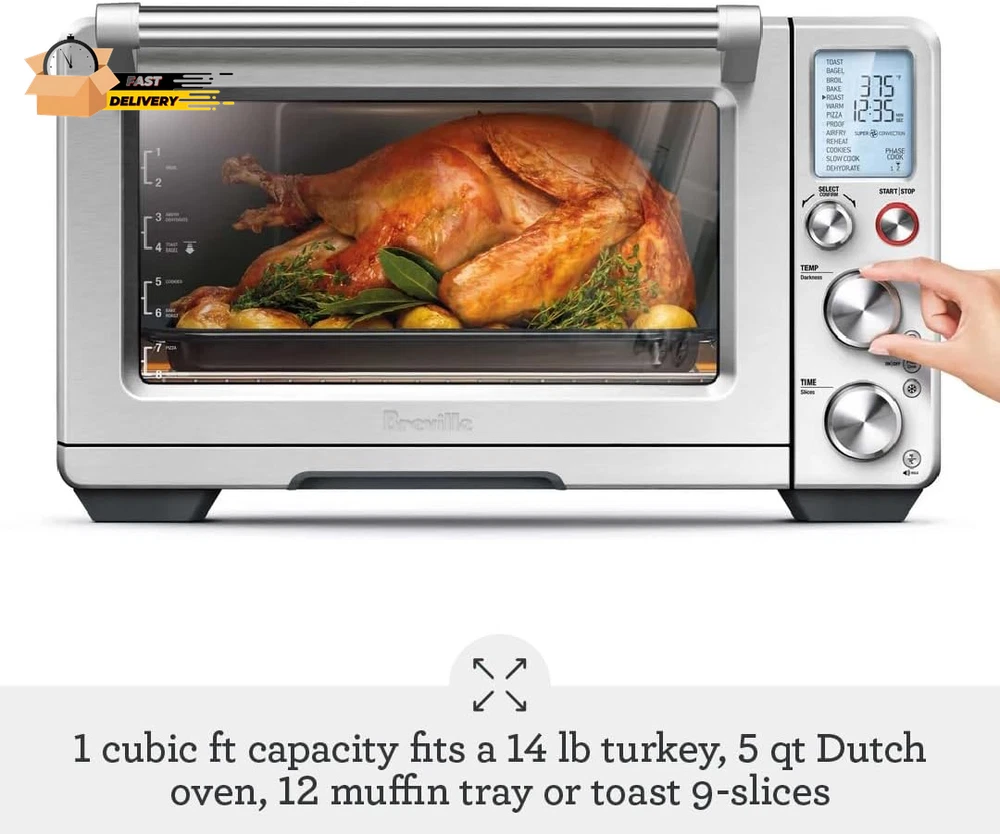 Store New Arrivals Add to Favorite View Feedback Contact the Smart Oven® Air Fryer Pro, Convection Countertop Oven, Air Fryer Toaster Oven Combo, BOV900BSS, Brushed Stainless Steel Description Capacity 1 Cubic Feet Power Source Corded Electric Capacity 1 Cubic Feet Wattage 1800 watts Material Type Stainless Steel Finish Types Brushed Control Type Knob Control Product Dimensions 17.5"D x 21.5"W x 12.7"H Model Number BOV900BSSUSC Material Stainless Steel Item Weight 30.2 Pounds Temperature Range 80-480 Degrees Fahrenheit Additional Features Adjustable Rack Door Style Dropdown Door Item Weight 30.2 Pounds Special Feature Adjustable Rack Color Brushed Stainless Steel Wattage 1800 watts Cable Length 3.4 Feet Global Trade Identification Number 00021614056948 Included Components Oven Racks (x2)., Mesh basket rack for dehydrating and air frying., 9"x13" Broil Rack and Enamel Roasting Pan., 13" Pizza Pan. Item Dimensions D x W x H 17.5"D x 21.5"W x 12.7"H Size 17.5” x 21.5” x 12.7” The Breville the Smart Oven Air Fryer Pro with Element iQ System is a versatile countertop oven air fryer combo allowing you to roast, air fry and dehydrate; Use super convection to reduce cooking time by up to 30% and choose from 13 cooking functions; Includes an interior oven light Introducing Breville+: Open a world of instant mastery with 1000+ guided recipes, live and on-demand classes, cook guides and more. Featuring recipes from leading food content experts, all tested and tuned exclusively for your Breville appliance ELEMENT iQ SYSTEM: Using 6 independent quartz elements, smart algorithms steer power to where and when it's needed to create the ideal cooking environment; Sensing and digital PID temperature control eliminates cold spots for precise and even cooking AIR FRY & DEHYDRATE SETTINGS: Air fry French fries and other family favorites; Higher temperatures combined with super convection (maximized air flow) deliver crispy golden air fried foods; Dehydrate a wide range of food, up to 4 trays of goodness at once SUPER CONVECTION TECHNOLOGY: 2 speed convection fan (super & regular) offers greater cooking control; Super convection provides a greater volume of hot air to ensure fast and even heat distribution perfect for air frying, dehydration and roasting 13 COOKING FUNCTIONS: Super versatile countertop toaster oven and air fryer with 13 functions to guide you to perfection: Toast, Bagel, Broil, Bake, Roast, Warm, Pizza, Proof, Air Fry, Reheat, Cookies, Slow Cook and Dehydrate INTERIOR OVEN LIGHT: Integrated oven light automatically turns on at the end of the cooking cycle to help you see inside; It can be turned on at any time to see your progress; Replaceable componentry like your regular large oven LCD DISPLAY: LCD display to easily access the built in smart functionality and all cooking functions; The LCD also indicates when pre-heat has completed and automatically begins to count down on the cooking time for perfect results INCLUDED ACCESSORIES: 13 inch Pizza Pan; Two Oven Racks; 9 x13 inch Broil Rack and Enamel Roasting Pan; Mesh basket rack for dehydrating and air frying WARRANTY: 2 Year Limited Product Warranty; Power: 1800 Watts; Voltage: 120 Volts Breville Smart Oven Air Fryer Pro BOV900BSS, Brushed Stainless Steel ABOUT US We offer the best prices around on high quality products. Our E-store includes media such as books, movies, music and games while offering electronics, toys, sporting apparel, clothing, tools, general home, garden items and more. SHIPPING We are always working hard to ensure your package arrives as soon as possible. Please understand that some factors like weather, high postal traffic, and the performance of shipping companies are outside of our control. We offer free shipping to the lower 48 states and ship within 2 business days of payment, usually sooner. We do not accept P.O. Boxes. Please provide a physical address. For shipping outside of the continental USA, we only use eBay's Global Shipping Program.The item is shipped to KY and then sent to the rest of the world. International customers are responsible for all duties and taxes. Continue to check out in order to calculate costs for shipping the item to your country. Messages regarding eBay's Global Shipping Program MUST be directed at eBay EXCLUSIVELY. RETURNS We offer a 30-Day Return Policy on items which you are not completely satisfied with. You have the option for a full-refund or an exchange of the item. No returns are available on items shipped outside of the USA. PAYMENT We accept PayPal. CONTACT US This page content is yet to come Please ad us to your favorite seller and visit again later Thank You CUSTOMER SATISFACTION We try our very best to make sure every customer is completely satisfied. If there's a problem, message us! We're happy to help. WE ACCEPT Copyright © 2021 AutoDS. | All Rights Reserved