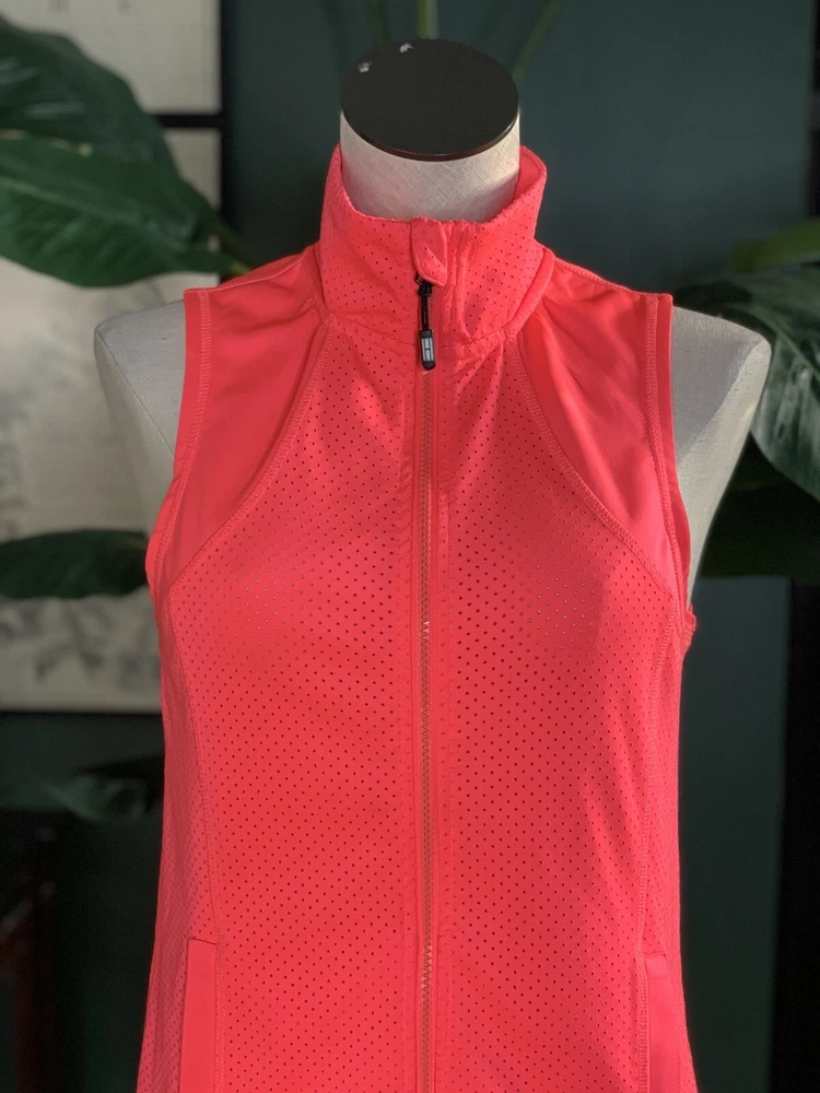 tommy hilfiger women’s small pink sleeveless zip front activewear vest yoga. In excellent condition Polyester/spandex Bust 17.5” Length 23.5” N1FG46