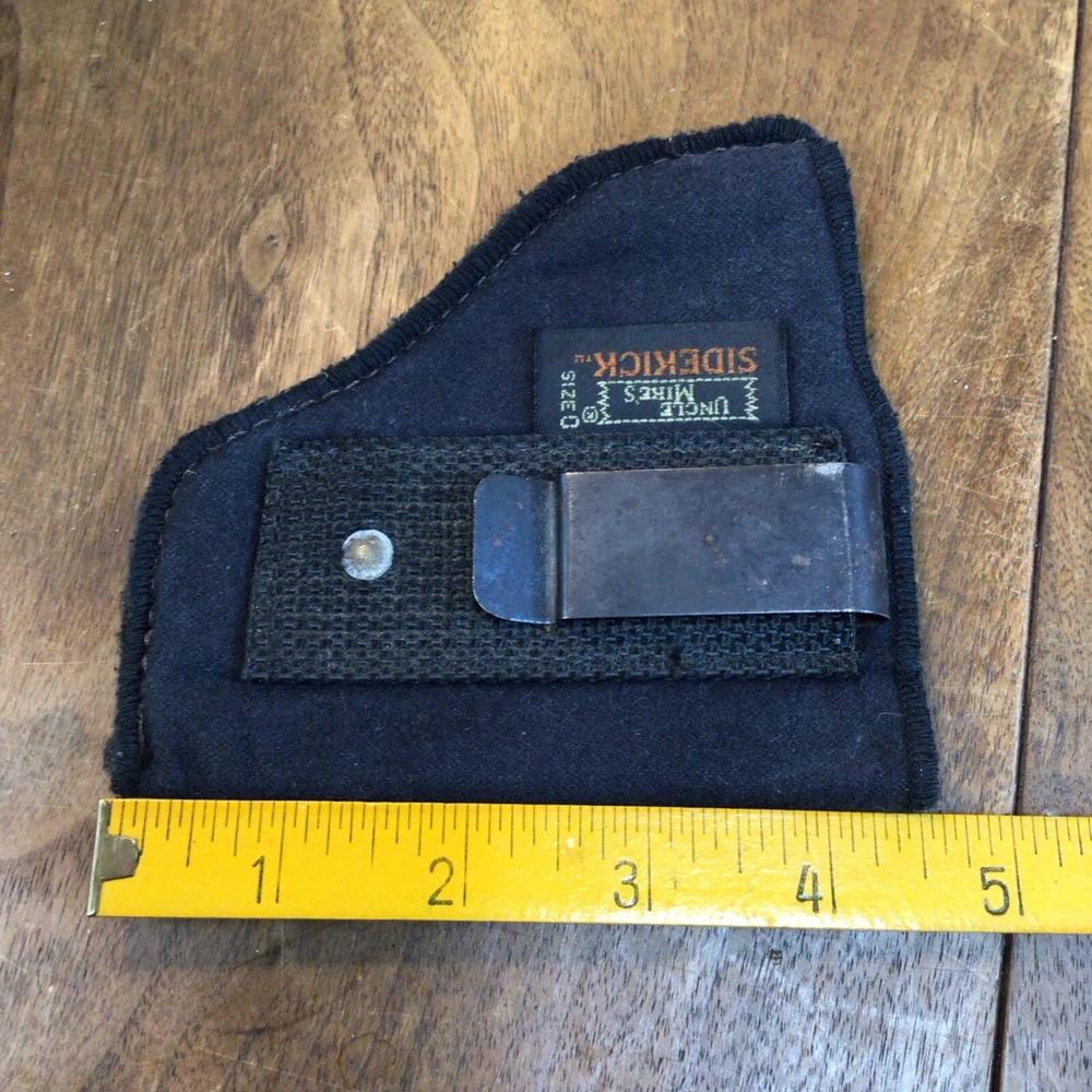 The Uncle Mike's Sidekick Holster Size 0 is a concealment holster designed for both revolvers and pistols. It is made of durable nylon and neoprene material in black color. This holster is suitable for carrying on the belt (OWB), hip, or inside the waistband (IWB) thanks to its clip attachment type. Perfect for securely holding your firearm while providing easy access during various activities like hunting or outdoor sports. Please look at the pictures closely, as this is the item that you will receive.