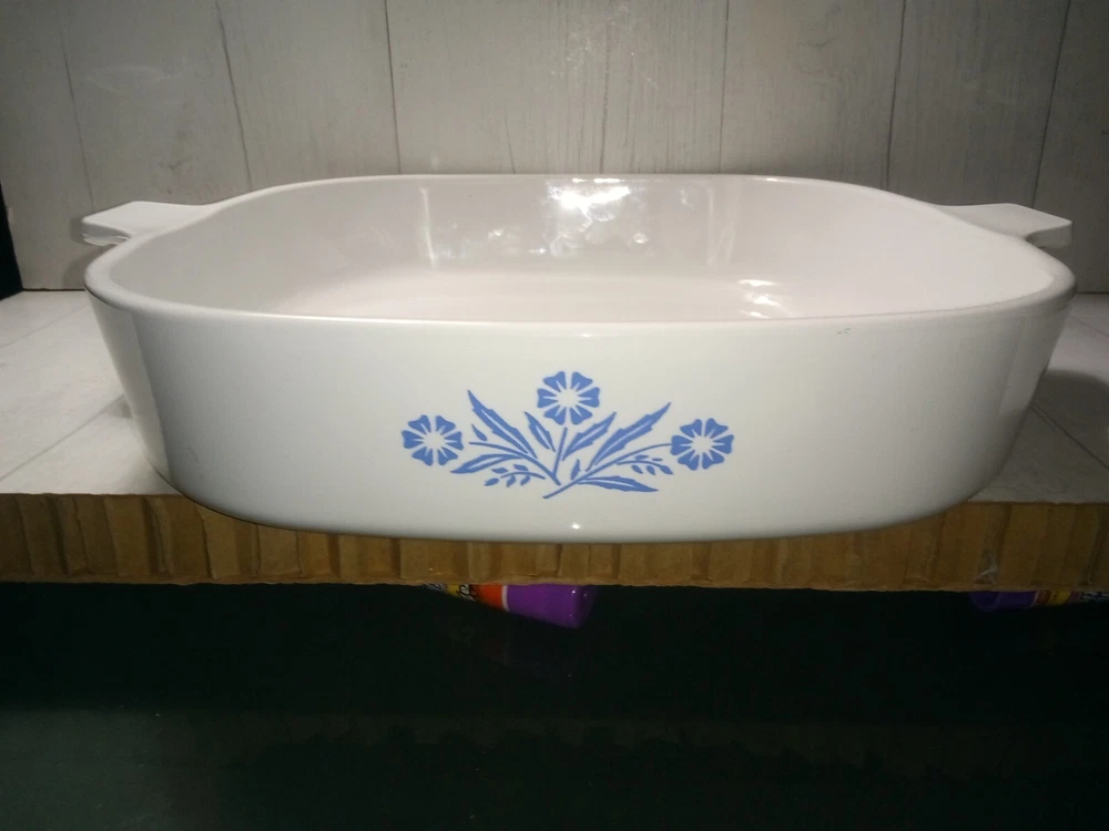 Material:CeramicCountry/Region of Manufacture:United StatesOriginal/Licensed Reproduction:OriginalMPN:unmarkedAntique:NoNumber of Items in Set:1Type:CasseroleBrand:UnmarkedShape:SquareColor:BlueHandmade:NoFinish:GlossyVintage:YesProduct Line:blue cornflowerPattern:FloralFeatures:Handles