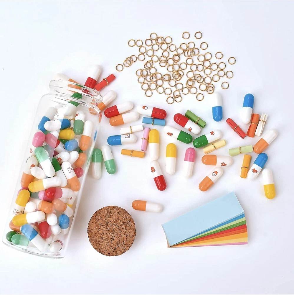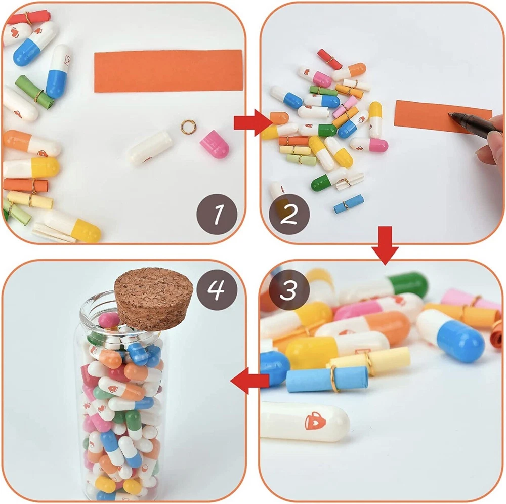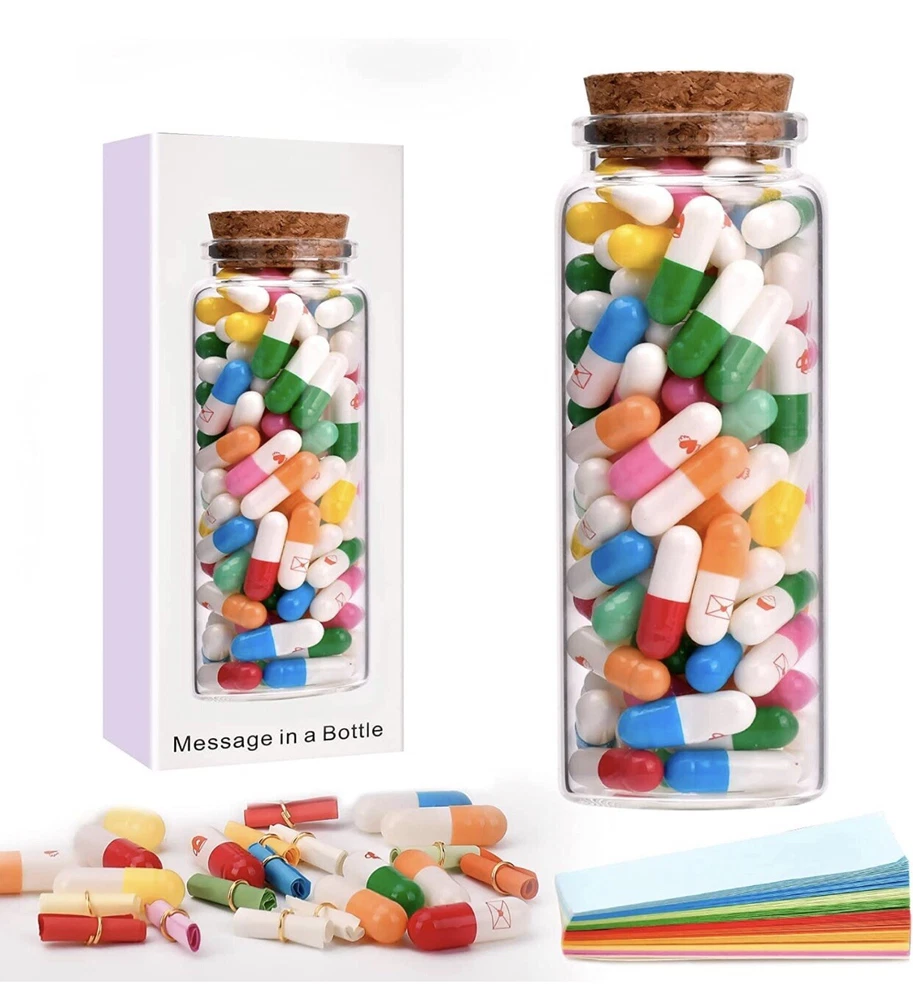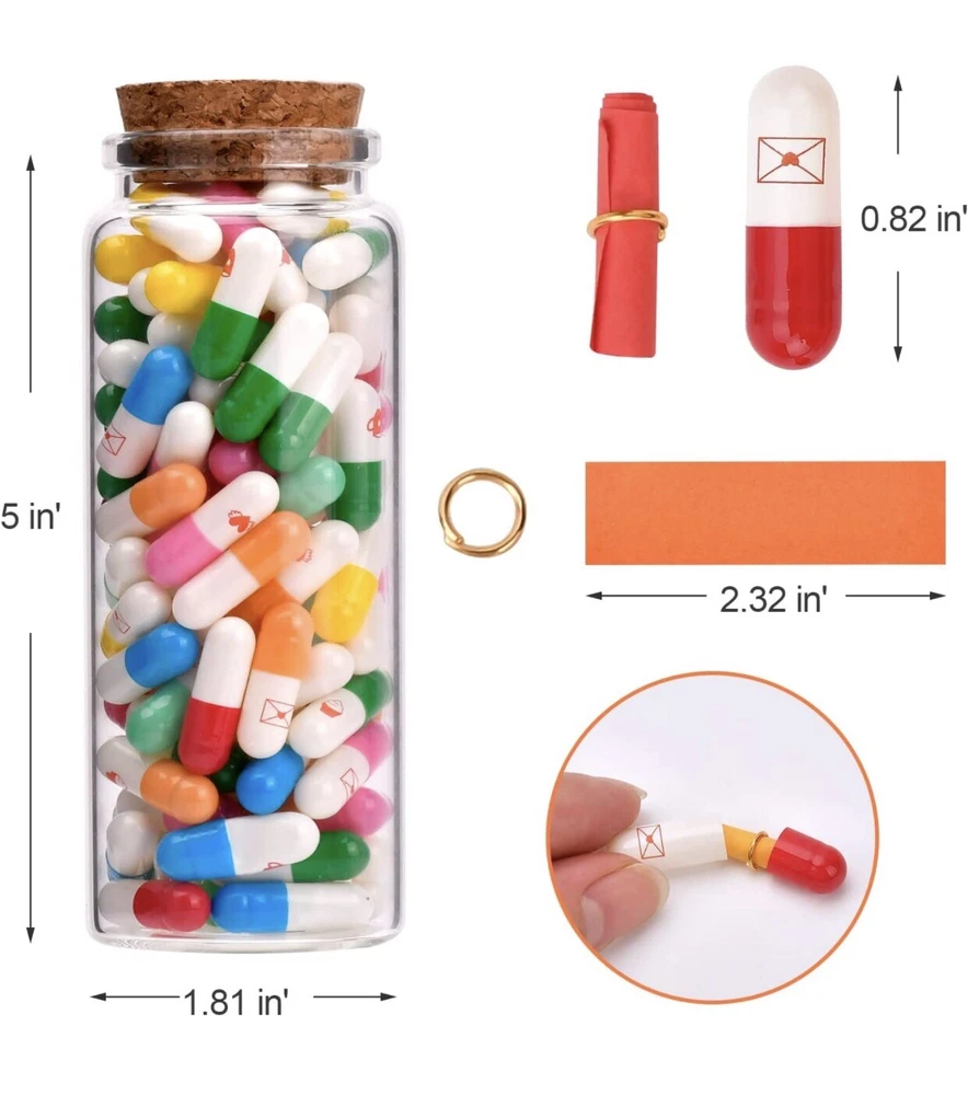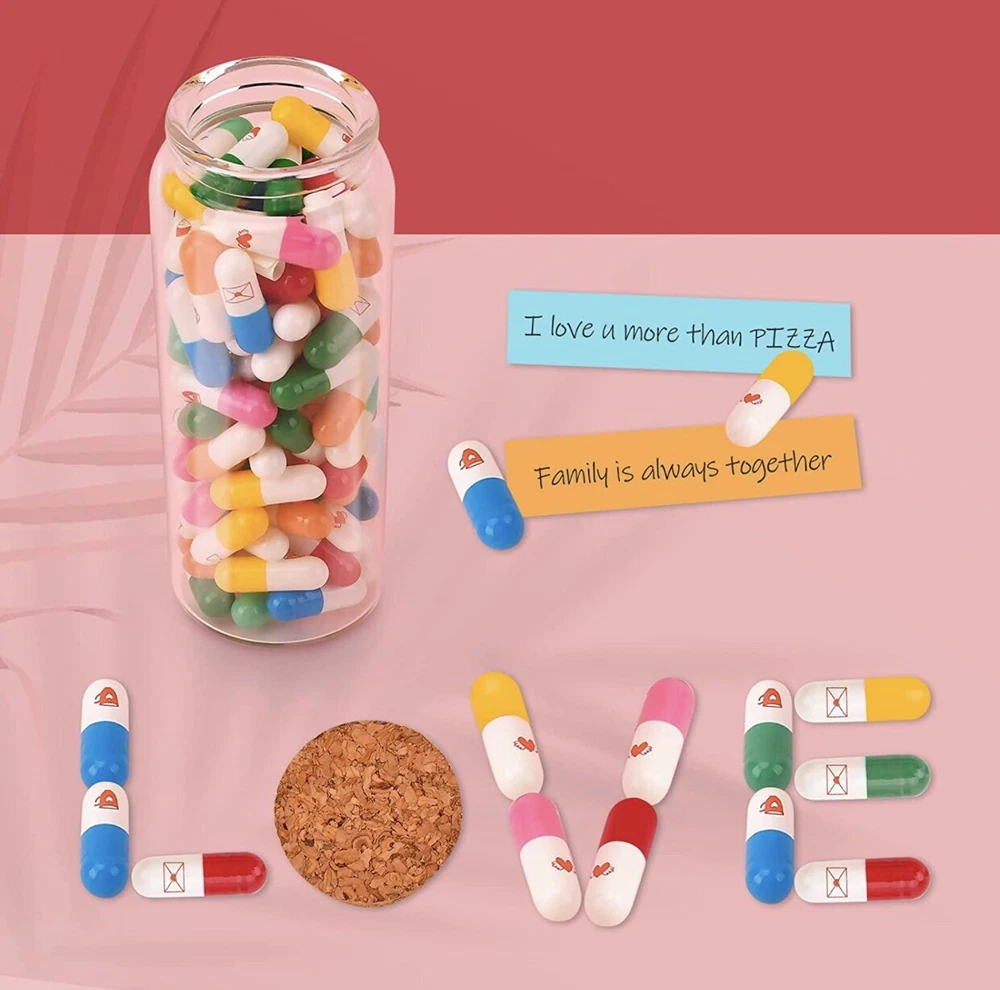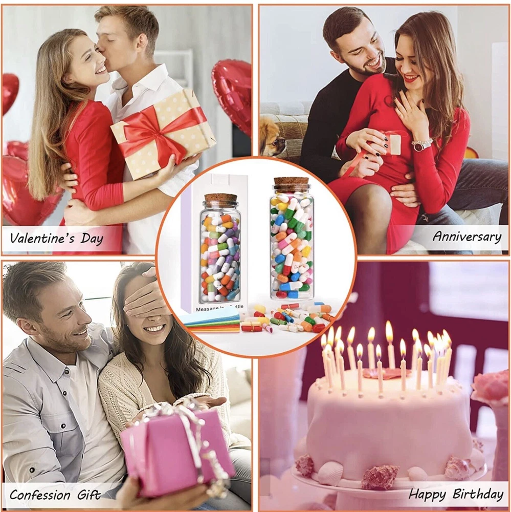 valentines day gift Message In A Bottle. Valentines Day Gifts for Her Him Girlfriend Boyfriend Capsule DIY Letter Message in a Bottle,100Pcs Smiley Love Friendship Letter Color Pills with Blank Paper,Birthday Christmas Present for Women Men(14) 230127-26