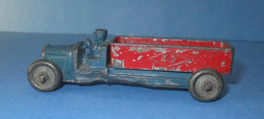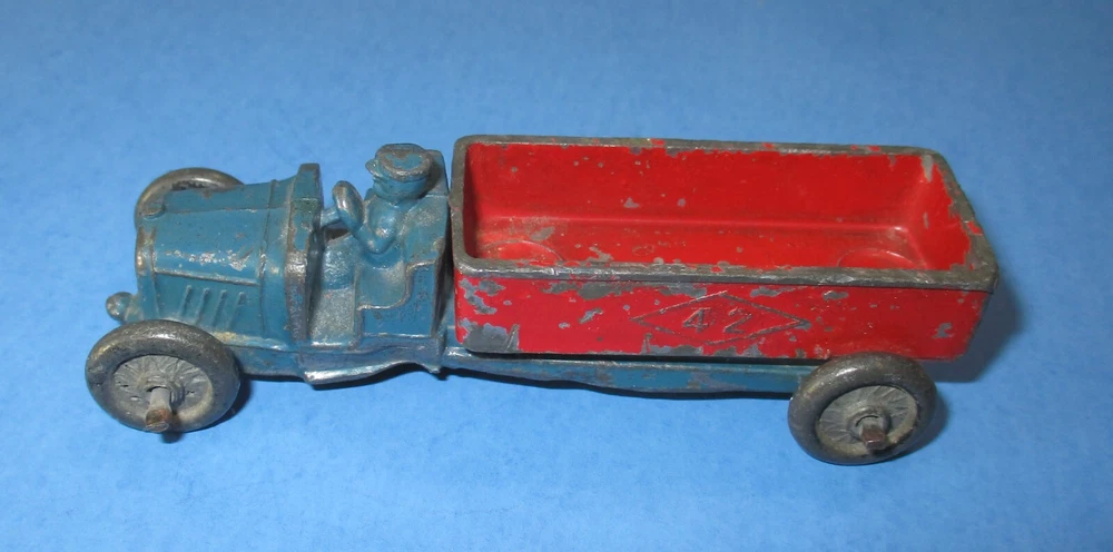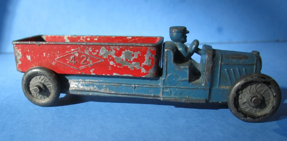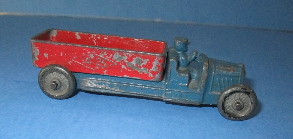You are bidding for one die-cast Slush of Dump Truck Ford? "42" on Dump body both side, driver, no cab, knob on front, by Kansas Toy, item KTV033, color: Green & Red - 4 original metal wheels, & size: 3 1/2", about 85% paint, most chips on red dump body only - Brian book say value $40 to VG $60 Please see above all scan pictures & condition .. Shipping/Handling: First Class package with Tracking label within USA. International buyers: box package with customs form .. I combine for shipping! .. Thanks for looking ..