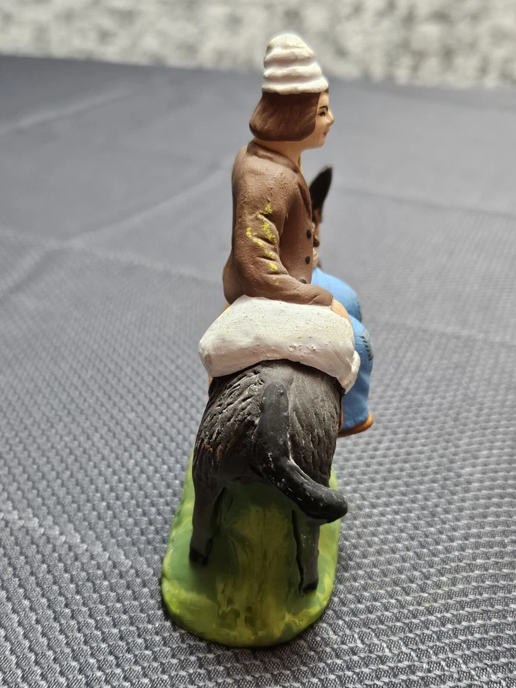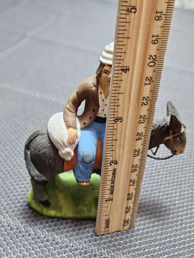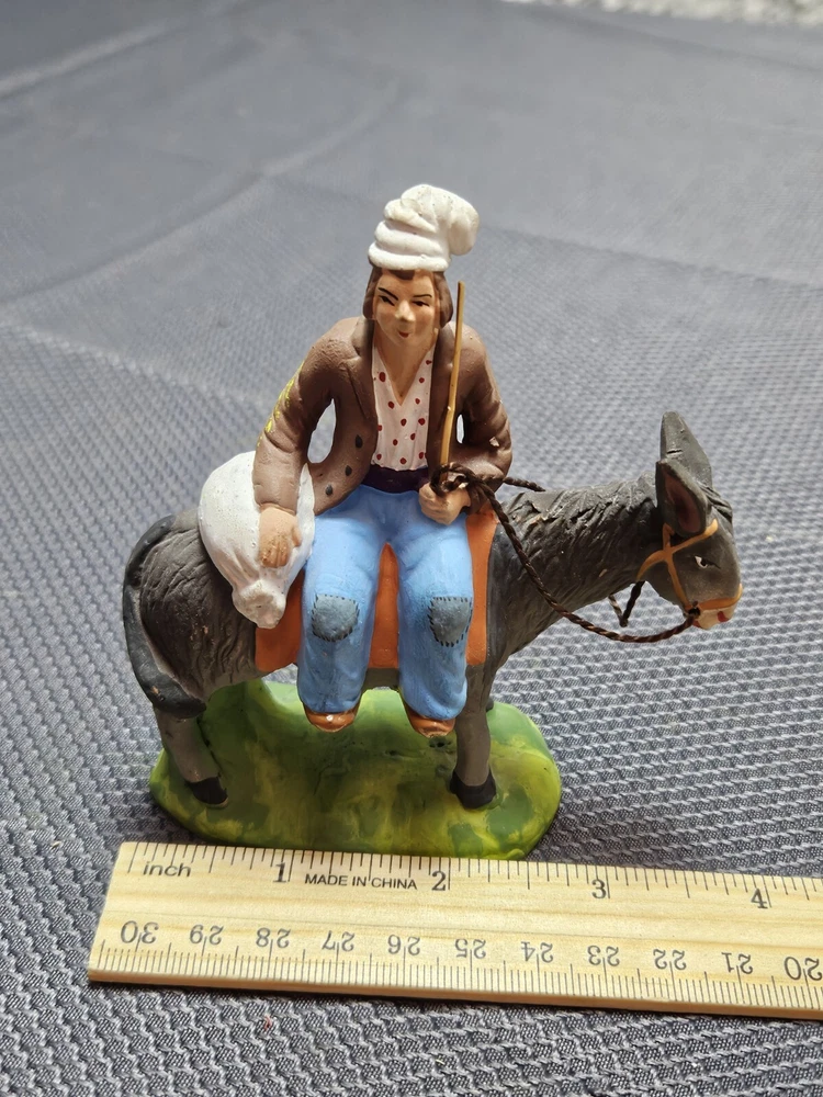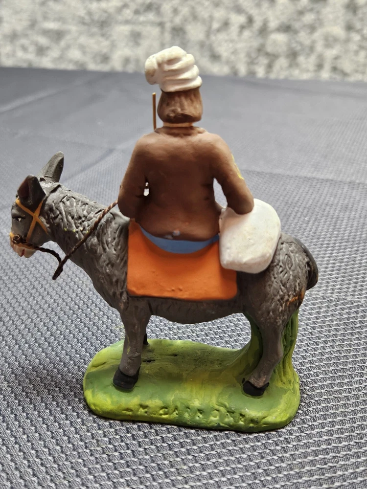 This vintage CANUT SANTON TERRACOTTA figurine depicts a man riding a donkey. The intricate details of the terracotta material make this a beautiful addition to any collection of decorative collectibles.