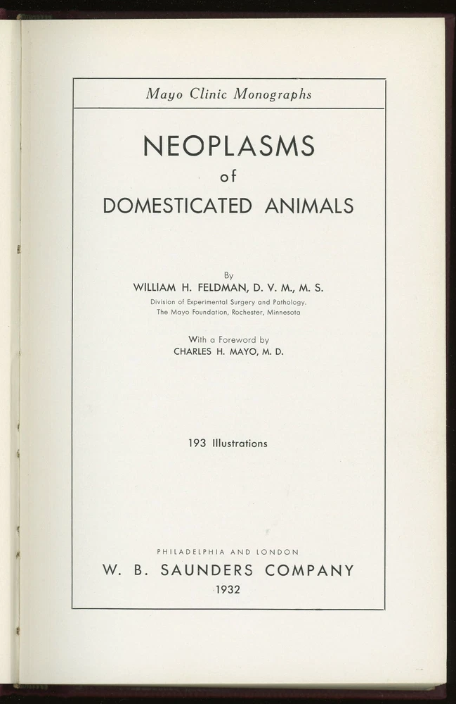 vintage Medical. NEOPLASMS OF DOMESTICATED ANIMALS by Feldman. 1932.