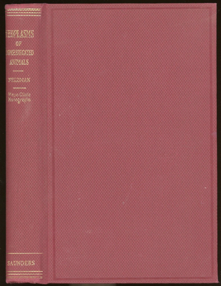 vintage Medical: NEOPLASMS OF DOMESTICATED ANIMALS by Wiliiam Feldman. Covers horses, cattle, dogs, cats, fowl, and even wild rats. 1st Edition. Pictures are of the actual book. Printed 1932. Published by W B Saunders Co. 6 inches wide by 9 1/2 inches tall. No dust jacket. Maroon cloth covers with gold stamping on spine. 410 pages. 193 illustrations, the majority micrographs, the rest are b&w photos. Condition: The covers show light shelf wear: spine edges rolled, outer corners not bumped but are rubbed, little/no rubbing on the edges; page edges unmarked. Faint owner name on the FFEP and penciled note on the RFEP, otherwise inner pages are clean, tight, and unmarked; glossy with little/no toning. Money back upon return if not satisfied or any problems with shipping within the US. Due to changes at the US Postal Service, we can no longer guarantee delivery on international mail. Thanks for looking. International Buyers – Please Note: Import duties, taxes, and charges are not included in the item price or shipping cost. These charges are the buyer's responsibility. Please check with your country's customs office to determine what these additional costs will be prior to bidding or buying. 03/12/22 2/2