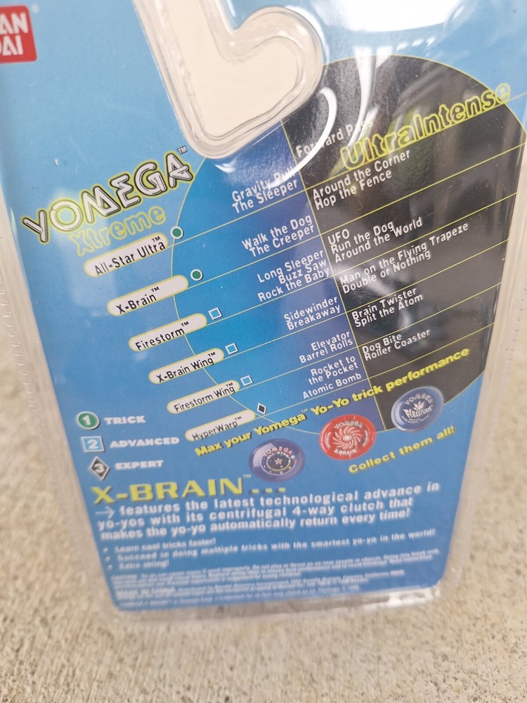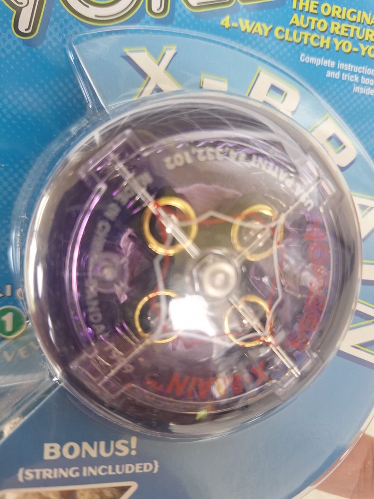 The vintage Yomega x-brain yoyo in purple is a classic toy from 1999, featuring the innovative design of Yomega. This yo-yo is known for its unique X-Brain shape and is a sought-after collectible item for toy enthusiasts. With its vibrant purple color and nostalgic appeal, this Yomega yoyo is sure to bring joy to both children and adults alike.