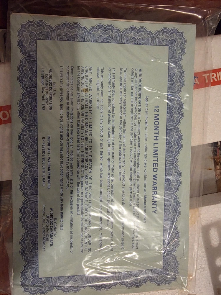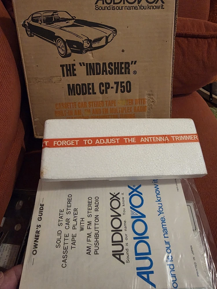 The vintage Audiovox CP-750 cassette player is a classic car stereo unit made in Japan. With a compact 1 DIN size, this retro audio device offers a nostalgic touch to any vehicle with its cassette player functionality. Perfect for those who appreciate vintage technology and want to add a unique sound experience to their car, this Audiovox stereo is a piece of automotive electronics history.