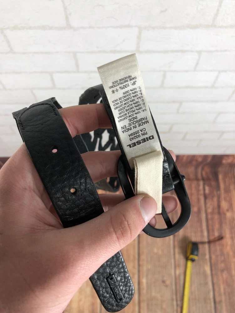 Accents: Buckle, Logo Brand: Diesel Color: Black Features: Adjustable, Buckle Character: Angel, Astro Boy, Batman Department: Men Type: Belt Size Type: Regular Material: Leather Style: Military/Webbed Belt, Western Belt, Work Belt Belt Width: Diesel Size: One Size Pattern: Solid Theme: 90s, Designer, Metal
