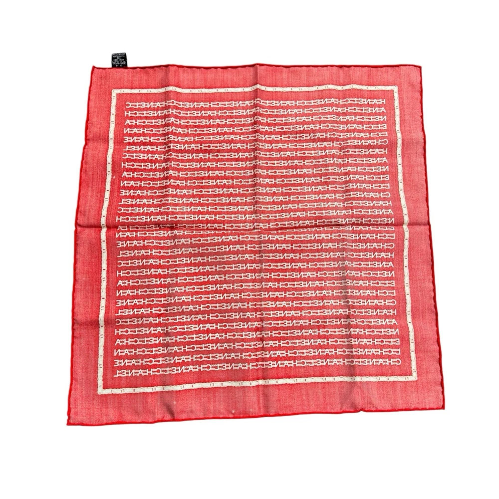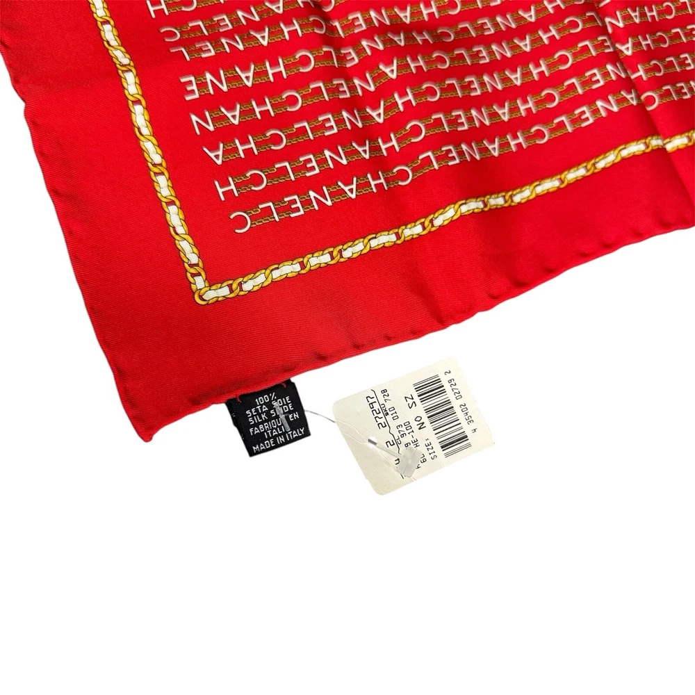 vintage nwt 100% silk red chanel logo scarf wrap