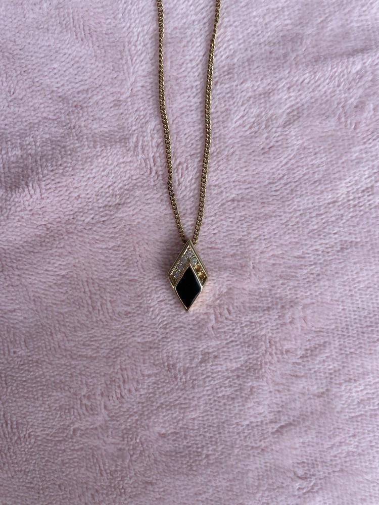 vintage triangle rhinestone christian dior pendant necklace gold plated