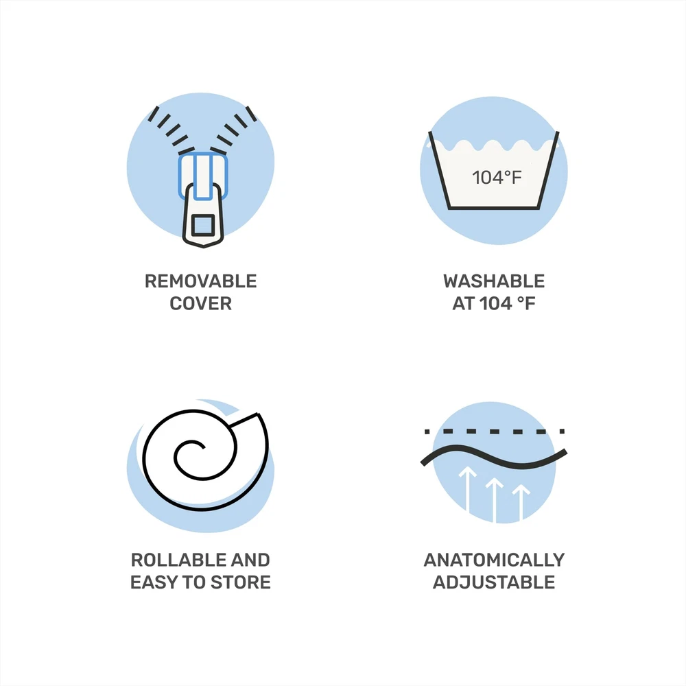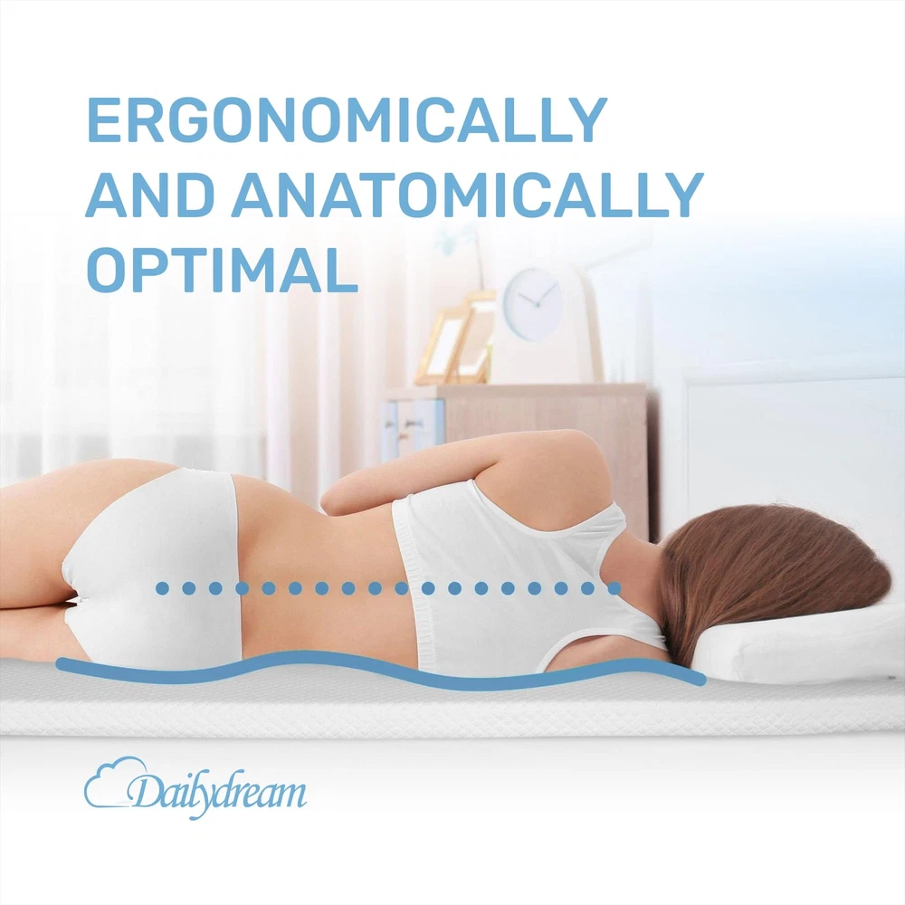 ☁ OUR MISSION: Good sleep for everyone. Anytime and anywhere. ☁ THE VISCOELASTIC FOAM: The viscoelastic foam is especially suitable for people who tend to prefer a softer sleeping surface. Our toppers provide unique pressure relief, and with the distribution of pressure, the body is positioned in an anatomically and ergonomically optimal position. This promotes better circulation and thus a deep and restful sleep. ☁ ADDITIONAL PRODUCT BENEFITS: Thanks to the nubs on the bottom and the four straps for attachment at the corners, our mattress topper is non-slip. The cover, made of 60% polyester and 40% viscose, is removable and washable up to 104°F. ☁ CERTIFIED QUALITY: All components of our product are certified: 1) The foam, 2) the cover, and 3) the packaging. Our toppers are made without heavy metals or formaldehyde and are suitable for allergy sufferers. ☁ SUSTAINABILITY: Through better material selection, we strive to create long-lasting products. Additionally, our cardboard packaging is made from recycled paper.