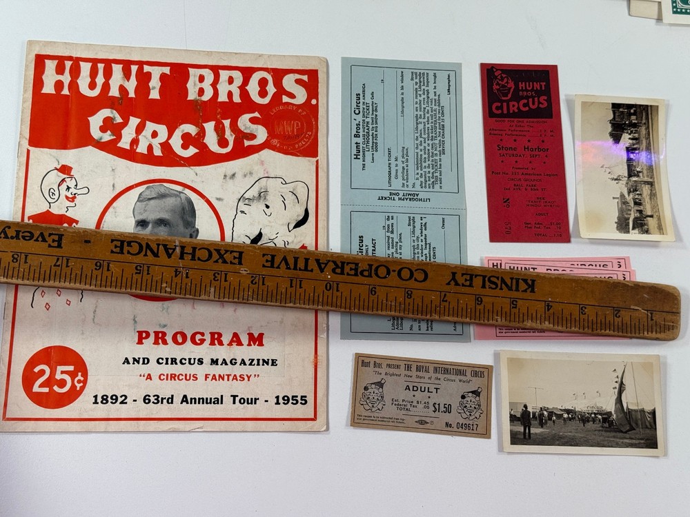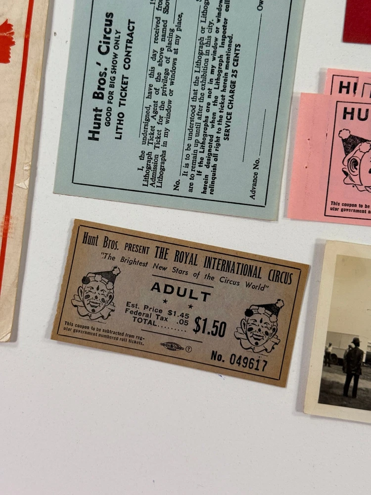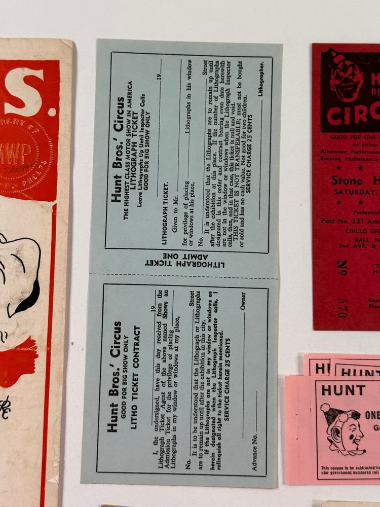 We recently purchased a large collection of vintage and antique circus, carnival and sideshow items from a lifelong Collection. These collections include amazing original items from a life of circus research and collecting. Broadsides, letterhead, flyers, posters, tickets and more. All of the items have age and wear and may have tears, soiling, foxing, water staining, scrapbook damage, tape and/or glue residue or other imperfections. Please make sure you look closely at the photos. Our photos are the best indication of condition. Message with questions. Includes items from Barnum Bailey, Forepaugh, Sells, Franzen, Roberts, Kirk, Hunt, Vargas, Bentley, King, Roller, Hanneford, Grey, Gray, Hoxie, Royal, Downie, Jarmes, Barney, Lewis, Rice, Kuhn, Haag, Seils-Sterling, Hagenbeck Wallace, American, Gollmar, Robinson's, Sells-Floto, Buffalo Bill, Russell, Howe, Robbins, Schell, Main, Richard, Myers, World Bros, Adams-Floto and more! WE DO NOT BREAK OUR LOTS. THANKS. STORE POLICY. STORE POLICIES Please look closely at the item photos they are the best indication of condition. Please ask questions BEFORE you purchase an item. All of our items are sold AS-IS. No returns please. All offers considered, first reasonable offer accepted! We reserve the right to adjust the mode of shipping. WE NEVER BREAK OUR LOTS. Thanks! We ship all items within 3 business days . Larger items may take longer. We have been buying and selling in Southwestern Kansas for almost 20 years! Thank you for your purchases and support of our small business!
