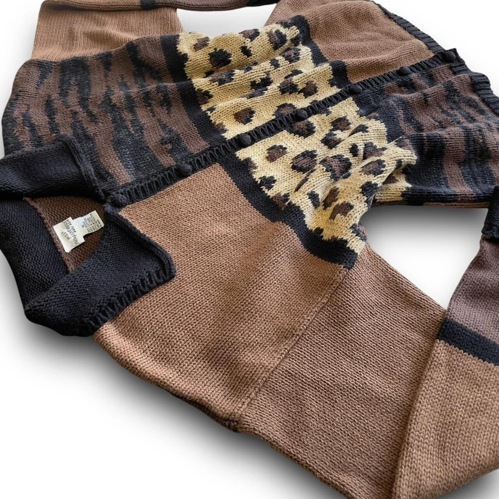 vtg animal print patchwork knitted cardigan button up closure xl colorblock