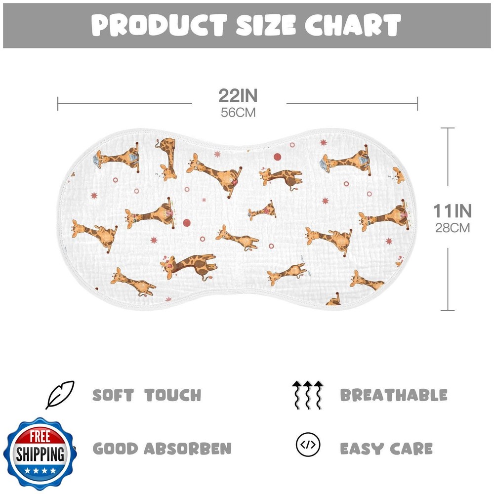 vvfelixl Muslin Burp Cloths Funny Giraffe Emotions Baby Washcloths for Baby Girl Boys 2 Pack White Features ❤Soft & Absorbent : The baby burp cloths are crafted with 100% cotton which is soft, super absorbent, machine washable, and very durable. The muslin baby burp cloths will absorb liquids in seconds, protecting you from accidental spit-ups and drools. Simplify your parenting!One of the must-have baby essentials. ❤Maximum Shoulder Coverage : Our burping cloths for baby are specially designed in figure-8 to ensure a secure fit, preventing the burp rags from slipping. Measuring 22" x 11", this burp cloth provides ample coverage for your shoulders. ❤Material : The front of muslim burp cloths are made of 100% cotton and the back are terry cloth layer for absorption with skin-friendly soft touch,which protect baby's skin. The burp cloths soaks up all drools and spits to keep baby clean and dry! ❤Multi-functional Uses : The soft baby burp cloths are great for catching and protecting your baby's clothes from teething drools, spit-ups and much more. Use the muslin baby burp cloths as teething cloth, slobber wipes, breastfeeding cover mat, saliva towel, baby pillow towel, anti-spitting towel . ❤Adorable Gift : The baby burp clothes for babies are designed in various cute themes while making sure it is practical , we also want them to be adorable for your baby. Also,The cute baby burp rags will make a practical and thoughtful gift on baby showers, baby registry, birthdays , Christmas, or on any special gifting occasion . Shipping Free & Fast Shipping: We offer free shipping to most of the USA with a normal delivery time of 3-7 days. However, due to the current situation, additional delivery time (up to 3 weeks) may be required for some items. Alternative Carriers: We may use alternative carriers (e.g., USPS, FedEx, UPS) to ensure your package arrives safely and on time. Due to the use of multiple carriers, we are unable to provide a tracking number automatically. Handling Time: Orders are processed and shipped within 1-2 business days of receiving cleared payment. Shipping Restrictions: Shipping to Alaska, Hawaii, Puerto Rico, Guam, and other US territories may incur shipping charges or delivery restrictions. Please contact us before ordering, or your order can be refunded/cancelled. State Restrictions: Certain items may not be shipped to California due to state regulations. Contact for Tracking Updates: If you require tracking updates or have any concerns about the delivery of your order, please feel free to contact us, and we will be happy to assist you. Return Policy 30-Day Hassle-Free Returns: If you are not completely satisfied with your purchase, you can return the item for free within 30 days of receiving it for a full refund or exchange. Easy Return Process: Contact us, and we will provide you with a prepaid return shipping label and detailed instructions. No Restocking Fee: There are no restocking fees for returns. However, the buyer is responsible for return shipping costs if the return is not due to a seller"s error. Refund Processing: Refunds will be processed within 1 business day of receiving the returned item in its original condition. Feedback Your feedback is extremely important to us. We strive to provide the best products and customer service possible. If you are satisfied with your purchase, please take a moment to leave us a positive review. If you have any concerns or issues with your order, please contact us before leaving negative feedback. We are committed to resolving any problems and ensuring your satisfaction. Contact Us If you have any questions or concerns, please feel free to reach out to our customer support team. You can contact us through the eBay messaging system. We are available Monday to Friday, 9:00 am to 5:00 pm EST, and we will do our best to respond to your inquiry within 24 hours. Thank you for supporting our small family business!