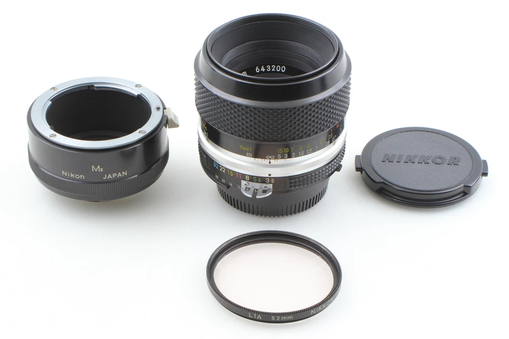 w/ M2 Tube [N MINT] Nikon Micro Nikkor P Auto 55mm F3.5 Ai Converted From JAPAN Description Total Condition; Near MINT Serial Number; 643200 Appearance; Appearance is beautiful. tiny scuffs from normal use. It shows signs of use. *Please check photos. Optics; -Lens: Beautiful condition. There is no fog. There is no fungus. There is no balsam separation. There are no scratches. There are a few tiny dusts. No problem in the shooting. Functional; It works properly. Bundled Items; All you can see on the picture will be included in a set of a package. Above condition is based on my own opinion. Please check the photo carefully. Please feel free to contact me for any questions! Thank you. Shipping I send a product by FedEx International Priority . I attach the tracking number. Please bid it without worrying. Shipping is available from Monday to Friday. Weekends are not available because office is closed. Returns Unconditional Return Policy Customer service and satisfaction are very important to us. I have an unconditional return policy if notified within 30 days of the receipt of the item. All returned items must be the original condition. All return requests must be made within 30 days of the receipt of the item. Please contact me first for return before you ship it back to me. The postage of the returned goods is a seller burden. International Buyers Please Note: Import duties, taxes, and charges are not included in the item price or shipping cost. These charges are the buyer's responsibility. Please check with your country's customs office to determine what these additional costs will be prior to bidding or buying.