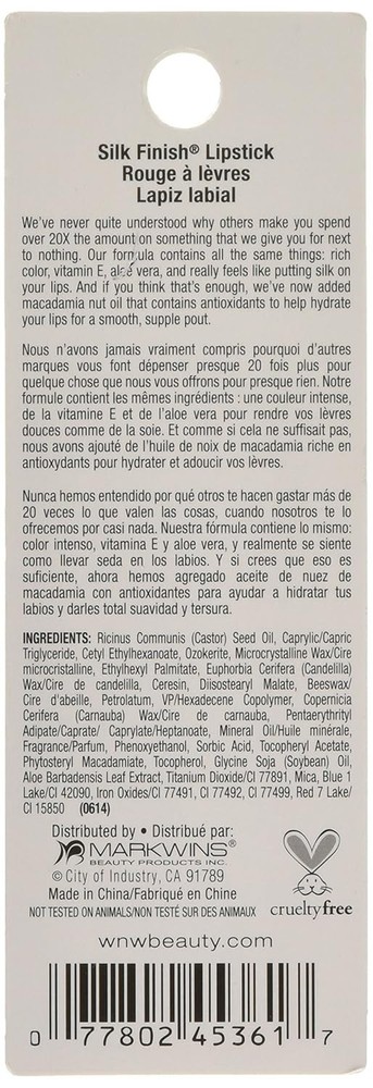 wet n wild Silk Finish Lipstick, Hydrating Rich Buildable Lip Color,Dark Wine
