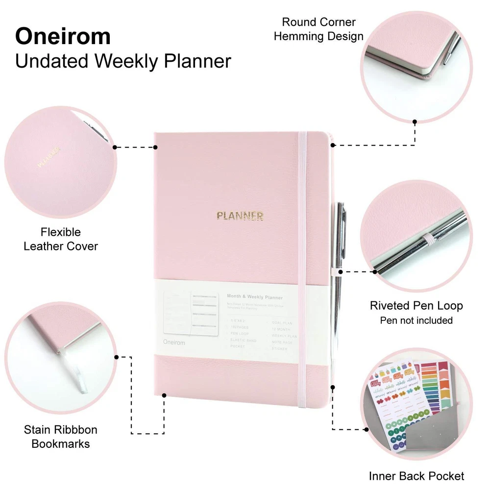 wisefine Undated Academic Weekly Monthly Planner for 2024, 2025, 5.6"x8.2", 52 Weeks and 12 Months Hardcover Journal Agenda with Pen Holder, Thicker Paper, Stickers, Inner Pocket for College If you feel like you need a place to write down your long-term goals in, the Oneirom undate planner is what you’re looking.Its compact size and lightweight design allows you to carry it everywhere.Not to mention, its elegant appearance makes you want to make a perfect start every morning! ABOUT THE PLANNER »Compact size: 5.6" x 8.3" x 0.71" »1 year undated: 12 monthly views & 60 weekly views »100 gsm ivory woodfree paper »Pen holder »1 bookmarks »2x sheet of colorful stickers »192 Pages/96 Sheets »Inner Pocket »Elastic Closure SPECIAL DESIGN»My Goal PageLife Area&Top Goals for one Year »Month PageMonth Notes/Goals/Taks/Best Moentent/Review »Week PageWeek's Main Goal/Priorities/Notes/To do list/Habits(Skills)/This week's Wins/How to improve next week »Inner pocket - Use the handy pocket to stash business card, small items, or planner stickers. »Soft Faux Leather cover is environmentally friendly and soft touch. »Full yearly reference calendar, you can use the monthly calendar stickers for easy browsing. »Comfortable design, with rounded arc corners which will not cut the hand. »Lay-Flat 180°Flexible Planner – Lets you read more easily and makes note-taking effortless. START PLANNING AND ACHIEVING YOUR GOALSWith simple and elegant design, the planner is the perfect choice for organizing your life.The undate planner can help you fix procrastination and keep you accountable! Imagine what your life would be like if you reach your all goals. SPECIAL GIFT A special gift you can share with your friends and family. Perfect for Christmas gift, New Year gifts or Birthday presents. ❉UNDATED & COMPACT SIZE - Comes undated, unlike most dated planners, you can start using it at any time of the year without wasting a page. 12 months run in bulk and are separated from 60 weeks. Compact Size: 5.6" x 8.3" - this planner is made to go, and is perfect for a lady's handbag. ❉PROFESSIONAL DESIGN - Featuring 12 months of monthly and weekly pages for easy academic year-round planning.180°Lay Flat Planner/Yearly Goals Pages/ Leather Cover/2 Contact Pages/Pen Holder/Elastic Closure/Inner Pocket/Calendar Stickers/5 Weeks a Month/1 Bookmarks. ❉THICK WOOD-FREE PAPER - The academic planner features 80 sheets / 160 pages made from wood-free Ivory paper, which means it resists damage from light and air, ensuring long-lasting performance from one year to the next. The premium paper is environmentally friendly and protects eyes from strain because of the natural materials we incorporate. ❉ACHIEVE YOUR GOALS - Simple and Compact Oneirom Planner will help you to create a vision for your life, define and breakdown your short and long-term goals in each area of your life, and incorporate these goals into your monthly, weekly, and daily agenda. Stop procrastinating and start turning your big dreams into reality with this productivity journal! ❉SPECIAL GIFT - A special gift you can share with your friends and family. Perfect for Christmas gift, New Year gifts or Birthday presents.And weekly planners are perfect planners for business planning, bullet journals, college & academic planning. For any reason you are not 100% satisfied with Oneirom, please do not hesitate to contact us. We offer a worry-free after sales service for you! Shipping from the USA All of our products are shipped from the USA, ensuring quick delivery to your destination. Payment We offer the following payment methods: PayPal, credit card, bank transfer, and eBay's secure payment system. Free Shipping & Free Returns Shipping within the USA is FREE. Additionally, any return is absolutely free for you. Risk-Free Purchase You have the option to return an item within 30 days without any justification. We cover the return shipping costs! Fast Shipping We ship immediately upon receipt of payment. Generally, the package is delivered within 2-3 days in the USA. If it takes longer, we will contact you. Quality and Costs Made in Europe, USA, China No customs fees or additional charges Total satisfaction guarantee Invoice with declared VAT available upon request in .pdf format Feedback Your feedback is very important to us. After you pay for your purchase, you will automatically receive positive feedback from us.