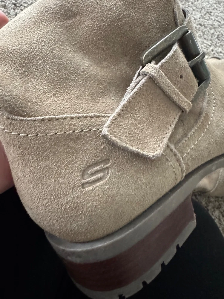 Elevate your footwear collection with these stylish SKECHERS booties, crafted with the finest suede leather in a versatile brown hue. Designed for women with a size 9 preference, these boots blend comfort and durability in a sleek, fashionable profile. The bootie style offers an elegant ankle fit, perfect for a variety of occasions from casual outings to more dressed-up events. The leather lining, insole, and outsole ensure a comfortable, supportive fit, making these shoes a practical choice for all-day wear.