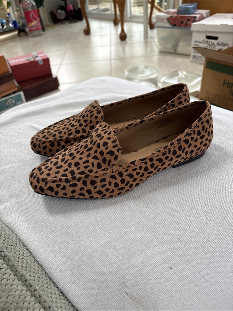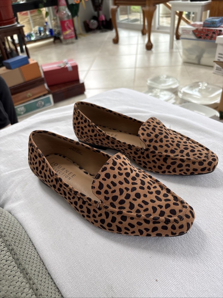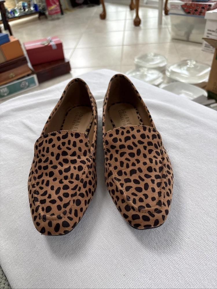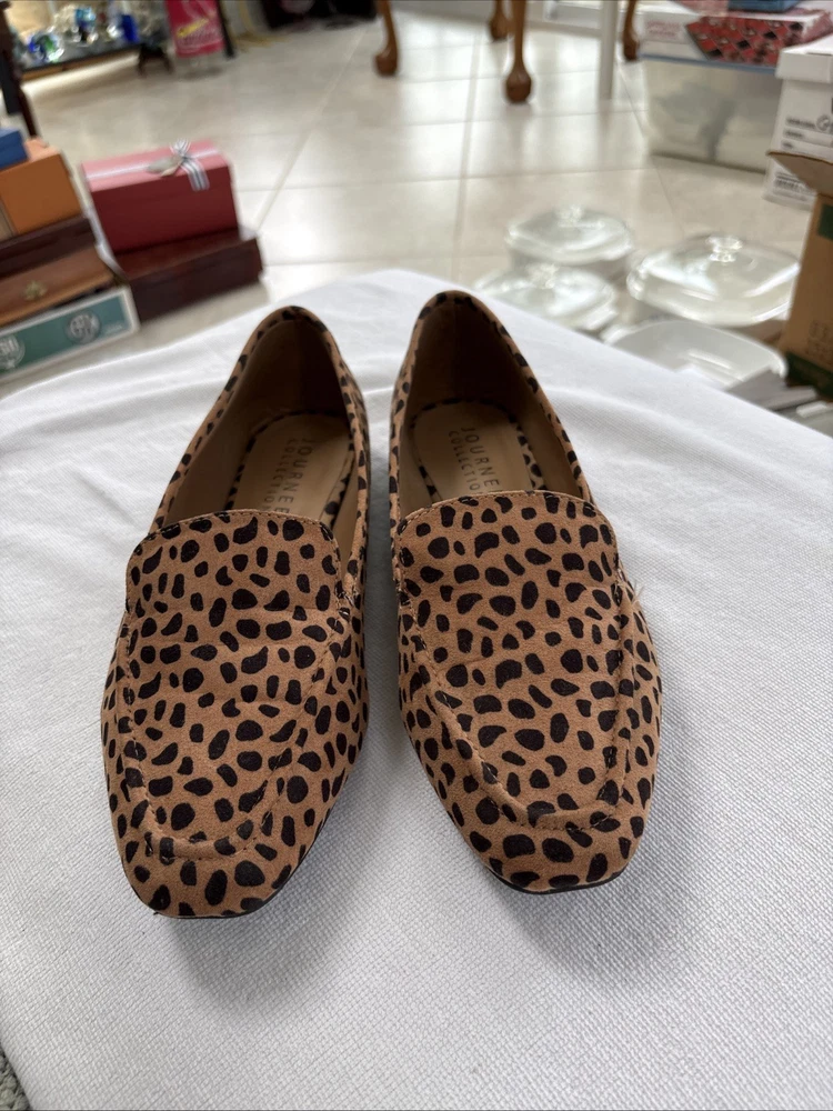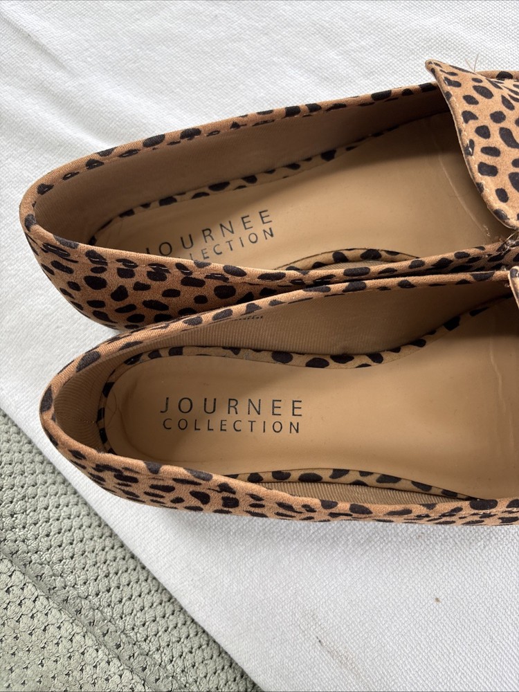 These women's shoes by Journee Collection are size 10 slip-ons with an almond toe shape and a spotted pattern. The multicolor shoes are lightweight and comfortable, suitable for casual, formal, and business occasions. Made of synthetic and blended fabric materials, these flats have a microfiber upper and a synthetic insole. The outsole is made of fabric and the shoe width is medium, making them perfect for the summer, fall, and spring seasons. With a city and college theme, these slip-ons are a stylish and versatile choice for women on the go.