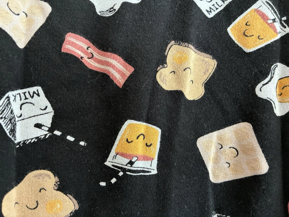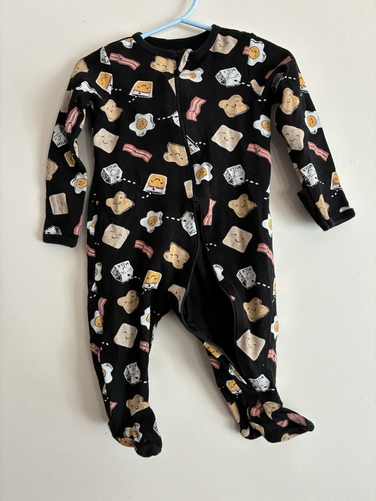 wonder nation Unisex Baby Bacon Eggs Cotton Long Sleeve 1-Piece PJs Black 6-9M. Condition is pre-owned. Smoke free, pet free home. Shipped via USPS Ground Advantage. In very good condition. Free of rips or stains.