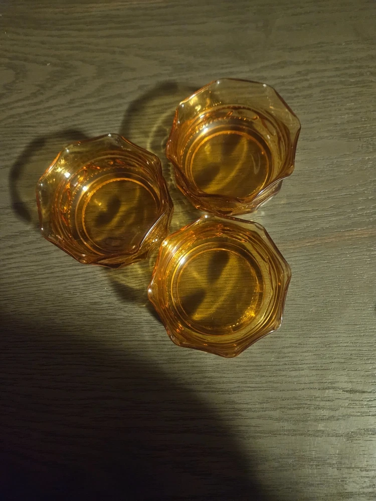 3 Indiana Glass amber Dessert bowls Thumbprint pattern