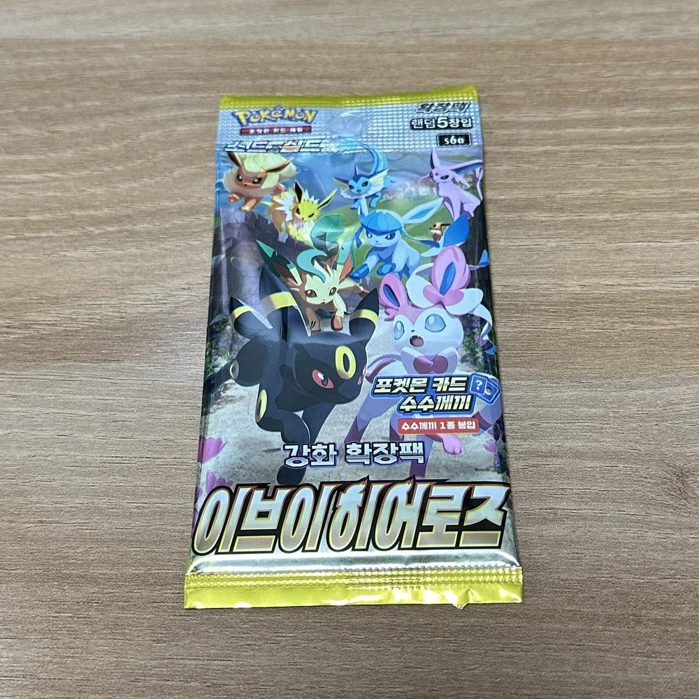 Pokémon TCG - Sword & Shield - Eevee Heroes [s6a] Booster Pack Brand NEW Factory SEALED Korean Version Card list includes the elusive "Moonbreon" Umbreon Alternate Art Secret Rare - e quivalent to the Evolving Skies English set DETAILS: Factory Sealed / Brand New Unopened factory sealed packaging x1 Pack Contains 5 Random Cards Each booster pack contains 5 random Pokemon TCG cards + 1 Quiz "Riddle Card" Cards are random as factory sealed. No guarantees for a specific card. This listing is for x3 booster packs. Please check the quantity of the items before purchasing! Ships within 1-3 working days.