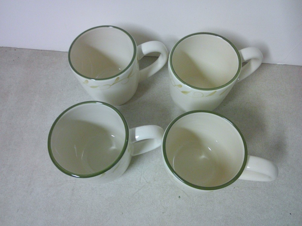 x4 Pfaltzgraff Traditions Sefton Park Green Trim Leaf & Vine Ceramic Coffee Mugs